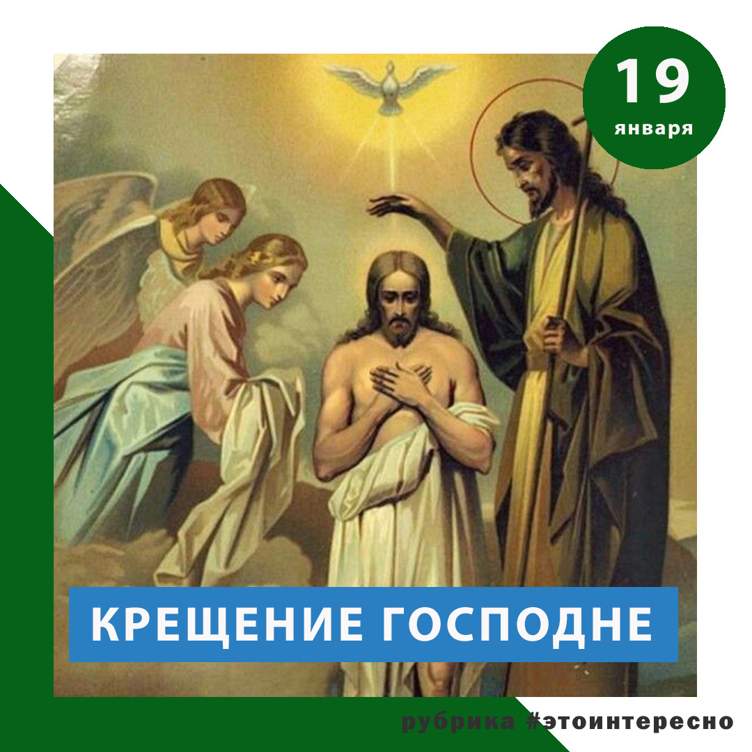 Крещение Господне (Богоявление) — христианский праздник, один из двунадесятых — двенадцати главных дат церковного года. Праздник установлен в память о крещении Иисуса Христа в реке Иордан Иоанном Крестителем. Во время крещения, согласно всем трём синоптическим Евангелиям, на Иисуса сошёл Святой Дух в виде голубя, одновременно глас с небес провозгласил: «Сей есть Сын Мой возлюбленный, в Котором Моё благоволение» Некоторые традиции празднования Крещения Господня: Некоторые запреты, которые иногда связаны с праздником: С КРЕЩЕНИЕМ ГОСПОДНИМ!