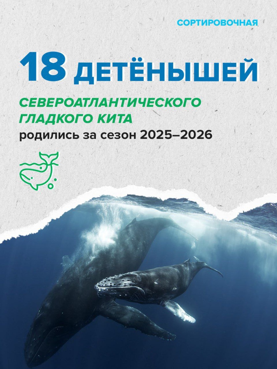 В Северной Атлантике есть самка по имени Джуно. Ей больше 40 лет, и в декабре исследователи заметили рядом с ней новорождённого. Это уже её девятый детёныш. А всего с ноября учёные насчитали 18 новорождённых китов, которые плавают рядом со своими мамами. Это отличные новости для вида, который находится на грани исчезновения. После 2017 года, когда была объявлена «необычная смертность» из-за столкновений с судами и запутывания в сетях, популяция, наконец, начала медленно расти. В 2024 году прирост составил 2.1%. Что послужило причиной уменьшения популяции и сколько сейчас насчитывается североатлантических гладких китов, рассказали в карточках 👆 Подпишись — будь на зелёной стороне | Сортировочная в MAX
