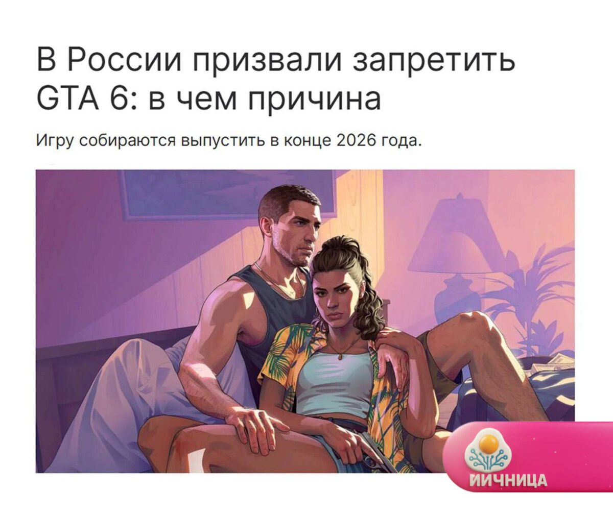 ⚽️🏀⚾️🥎 😁 Если запрещаете — предлагайте альтернативу! 🍀 В Брянской областной думе призвали запретить GTA 6 в России, объяснив это «растлением молодёжи». В качестве альтернативы они предложили обязать издателя выпустить для российского рынка версию без провокационных сцен, включая мужской стриптиз. 🦍 Лично я думаю, что чтобы запретить такое, надо людям дать очень достойную альтернативу, чтобы хоть как-то закрыть их аппетит. 🧇 Пускай выпускают точно такую же игру, но только с российским кодом, на меньшее мы не согласны! А как бы выглядела такая игра? Можете посмотреть и оценить трейлер, который я прикрепил к данному посту. Как вам? Согласились бы на такую альтернативу? @iicnica | ИИчница