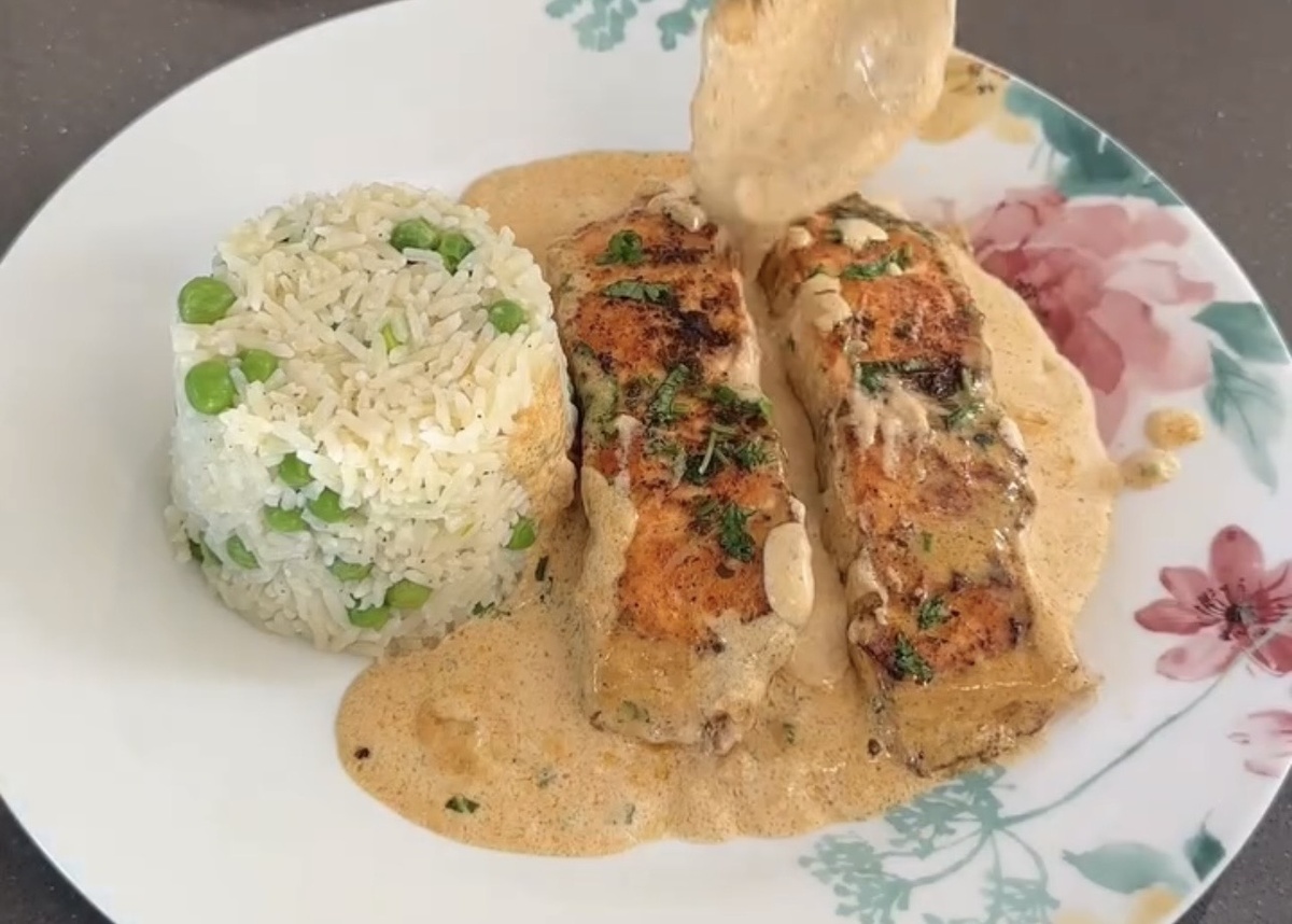 🤍🐟🍋 Ингредиенты (на 2 порции): 2–3 филе лосося (по 150–180 г каждое) Соль + чёрный перец Чесночный порошок (или 1–2 свежих зубчика, измельчённых) Свежая петрушка (горсть, мелко нарезать) Смесь трав для рыбы (или просто сушёный укроп + тимьян + немного орегано) 2–3 ст. л. оливкового масла extra virgin 1 ст. л. сливочного масла Сок ½ лимона + несколько тонких ломтиков лимона 1 зубчик чеснока (для соуса) 150–200 мл сливок для готовки (лучше 10–20% жирности, лёгкие) Рис (любимый — басмати, жасмин или обычный длиннозёрный) — примерно 150–200 г сухого Замороженный зелёный горошек — 200–250 г Время приготовления: 15–18 минут Лайфхаки для ещё большего вкуса: Если любишь поострее — добавь в соус щепотку хлопьев чили. Вместо сливок можно взять кокосовые (получится азиатский вайб). Горошек можно заменить спаржей или брокколи — тоже отлично сочетается. 🔗Пошаговый рецепт https://dzen.ru/a/aWum_wcHs1RIHzgt