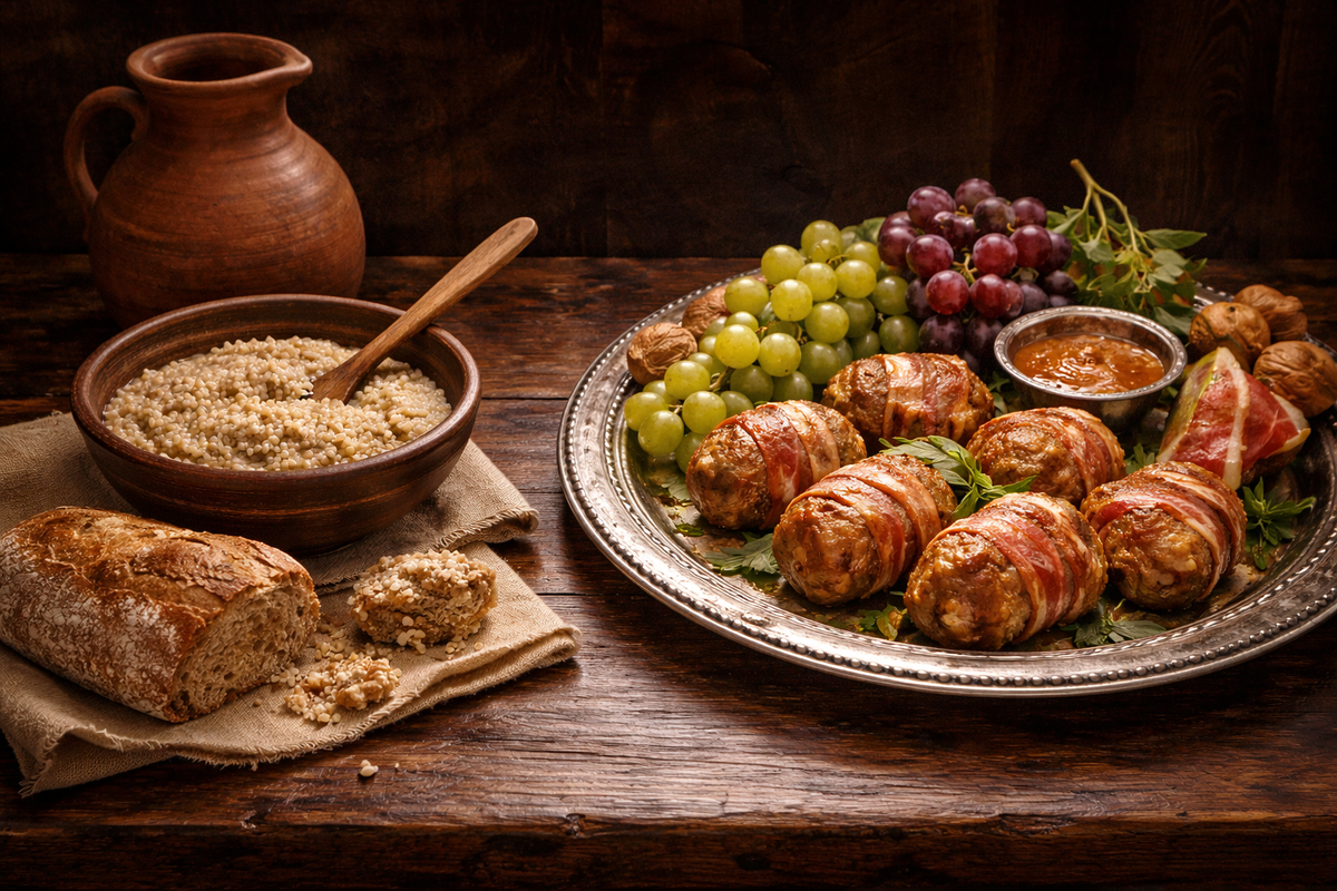 Голливудские фильмы и романы уверили нас, что каждый день в Древнем Риме заканчивался пиром с павлиньими языками и фонтанами вина. Но реальность была куда прозаичнее, а особенно — начало дня. Так что же стояло на столе у римлянина, когда он только открывал глаза? И как выглядел их главный «фаст-фуд» — прообраз современного бургера? Представьте римлянина на рассвете. Никаких яичниц, кофе или тостов. «jentaculum» (завтрак) был делом быстрым, скромным и часто — на ногах. Его содержание напрямую зависело от того, к какой из трех Римов вы принадлежали: Риму рабов, Риму плебеев или Риму патрициев. Раб или бедный городской плебей начинал день с самой простой и дешевой еды — «puls». Это была густая каша из полбы (далекая предшественница пшеницы), приготовленная на воде или разбавленном молоке. Иногда в нее добавляли немного соли, оливкового масла или овощей — репу, лук, бобы. Запивали это все не вином, а «posca» — кислятиной на основе уксуса, разбавленной водой и приправленной травами. Это был
