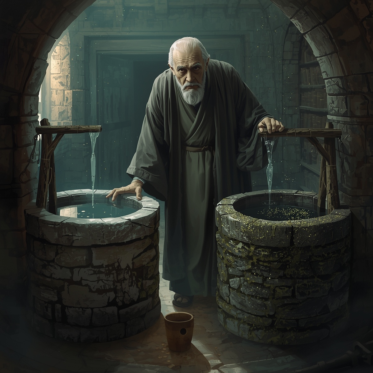 Он повёл Ивана не к полкам с философией, а в тёмный подвал библиотеки, где хранились самые древние, рукописные книги. Посреди подвала стояли два колодца.
