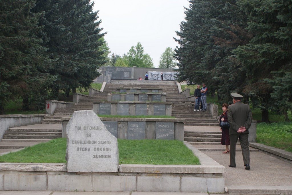 Особо запомнился воинский мемориал среди леса, с памятником в виде богини Победы, стоящей на колонне. А вокруг могилы, могилы. Между могил широкие длинные дорожки. Здесь нам удалось поговорить, представьте себе, с архитектором и строителем этого мемориала. Они и рассказали, как сходили с ума люди, собирающие в полях и лесах останки воинов. Как создавался этот мемориал.