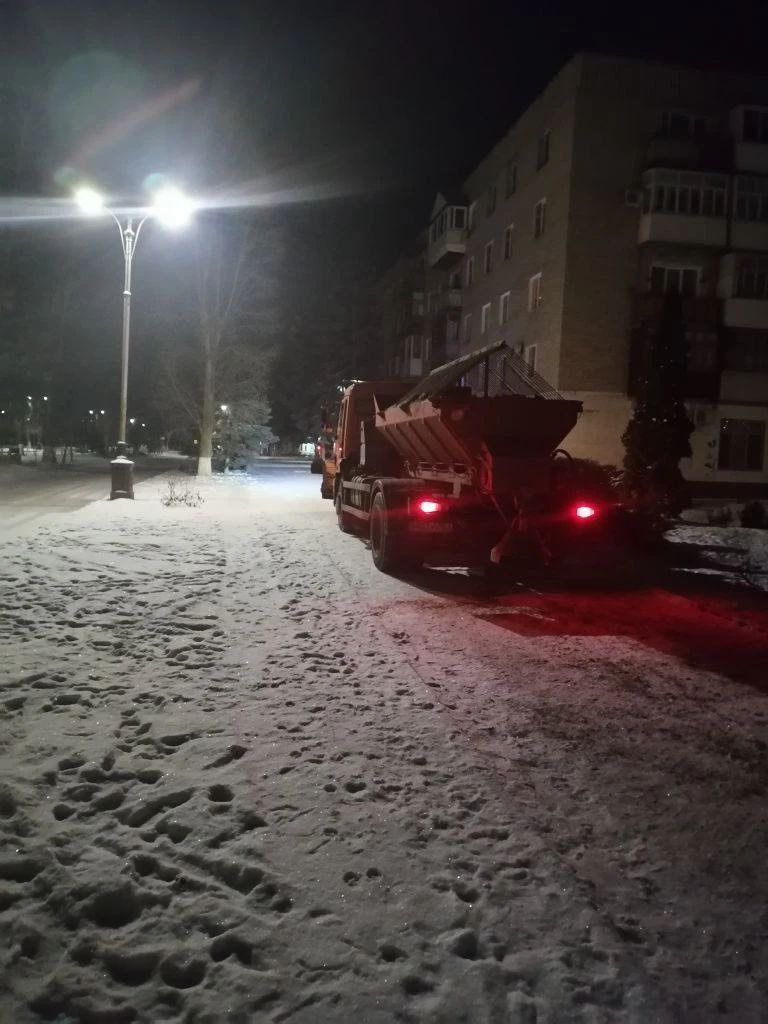 В Волгодонске провели обработку тротуаров пескосоляной смесью после снегопада