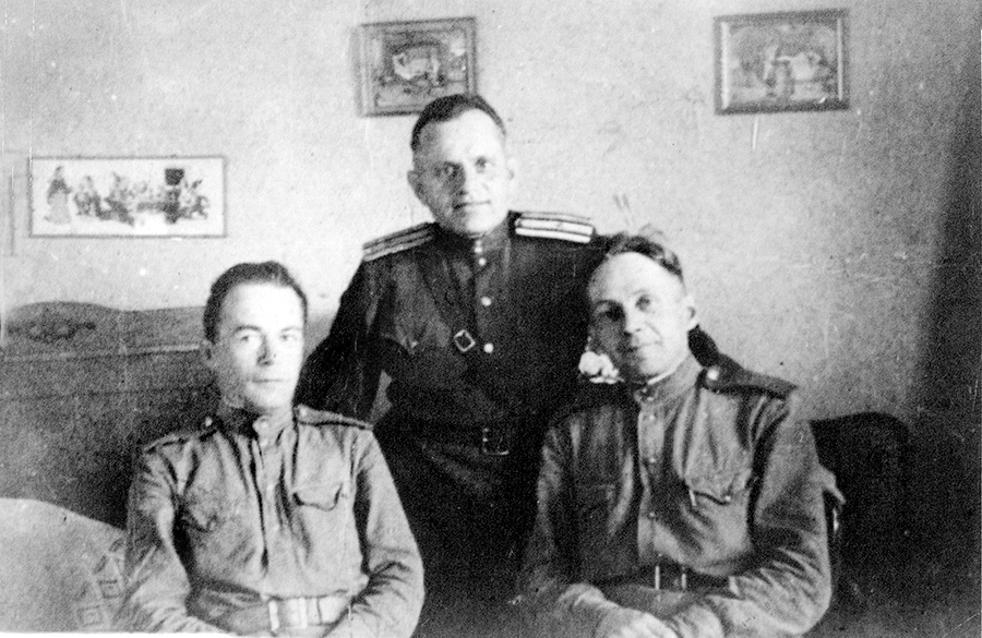 Отец, Семён Лукич Машковский (посередине), с фронтовыми товарищами