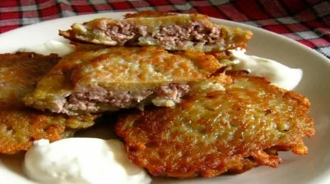 Подробный классический рецепт: Драники-конвертики с мясным фаршем