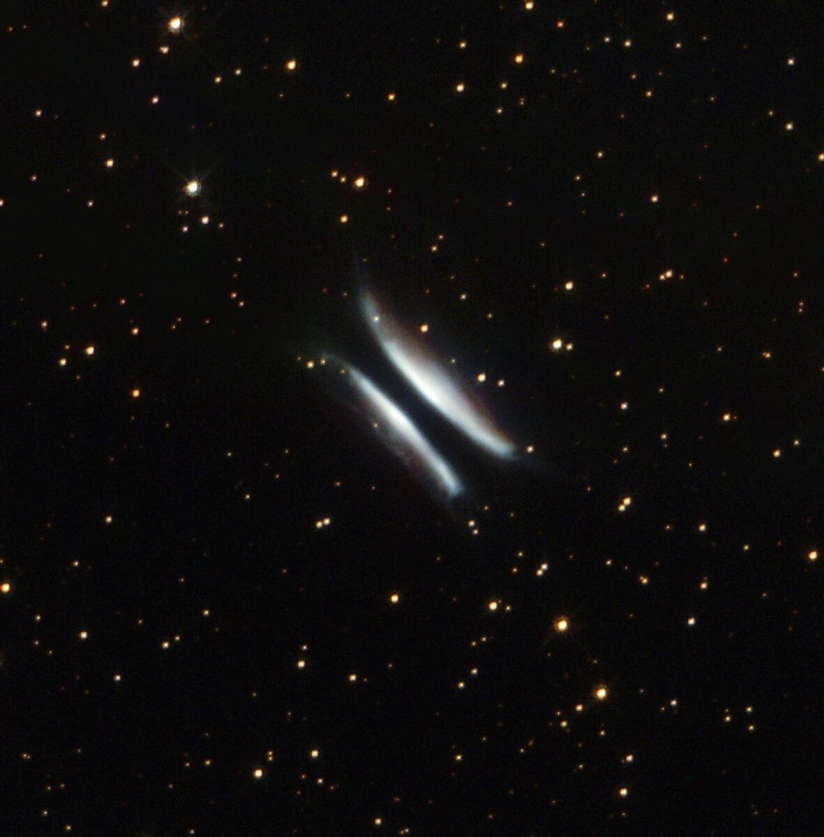 Факт: центральная звезда с поверхностной температурой около 10 000°C скрыта в диске, выбрасывая газ со скоростью 100 км/с за 1000 лет до стадии планетарной туманности. "Булочки" образованы светом, отраженным от пыли, а "котлета" — темной полосой пылевого диска в центре, видимого почти крайним. Факт: диск толщиной 0,1 светового года поглощает 99% света звезды, создавая тень и биполярное рассеяние по моделям протопланетарных оболочек. Описание изображения: два светящихся белых лопасти космического вещества по бокам от черного пылевого диска, напоминающего гамбургер; черный фон космоса усеян звездами. Факт: объект расположен в 900 световых годах в Стрельце, эволюционируя от красного гиганта к белому карлику массой 0,6 солнечной.