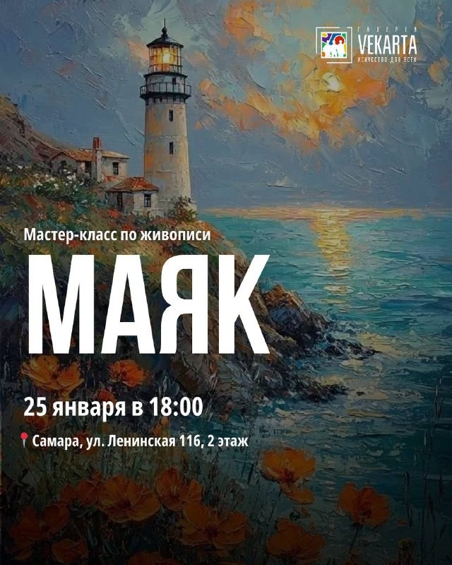 » Галерея Vekarta приглашает на атмосферный мастер-класс по написанию картины «Маяк». Это отличная возможность забыть о суете, создать уникальный арт-объект своими руками и провести время в необычной творческой атмосфере, даже если вы никогда не рисовали. 📅 25 января (воскресенье) в 18:00 📍 Художественная галерея Vekarta, Ленинская улица, 116 🎟️ 2890 – 3390 ₽ Купить билет на мастер-класс #выставки #навыходных #мастерклассы 👉 куда ещё сходить в Самаре