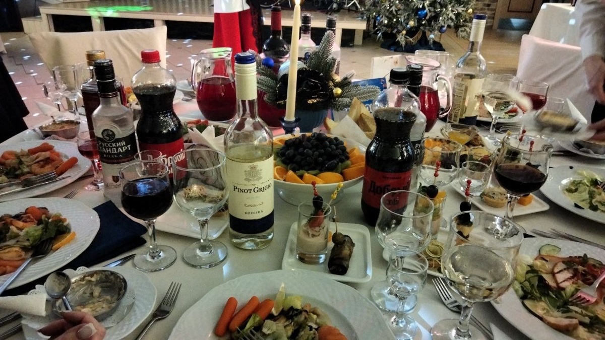 Привет всем, все ли из вас ходят вместе с коллегами на новогодние корпоративы? Перед Новым годом, мы небольшим коллективом решили отдохнуть в красивом банкетном зале города Кирова, из нашего Кирово-Чепецка, если кто не знает, в Киров нужно добираться примерно час. Вот собрались мы 6 веселых девченок и один наш прекрасный коллега-мужчина весело отметить предстоящий праздник. Банкетный зал, в котором мы собирались отмечать праздник, был очень красиво украшен. Всего накрыто 9 столов, за котором собрались разные коллективы. Открыли мероприятие три прекрасных снегурочки с танцем. Потом вышла ведущая, предложила выбрать от каждого стола самого активного и дала задание, что в течение праздника, как только зазвучит определенная песня, эти люди, должны как можно скорее бежать на сцену и танцевать от души, кто последний прибежит, тот выбывает. Я же старалась и бегала, что есть силы, а танцевала, как никогда на корпоративе. Вот нас осталась уже двое. Во время перерыва, мы ушли с девочками устроит