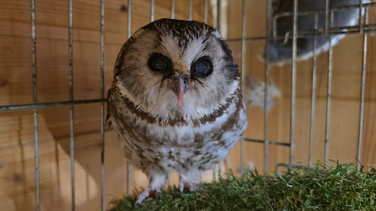 У мохноногого сыча Чучундрия клюв достиг длины, при которой уже неудобно есть. Пора его подрезать.