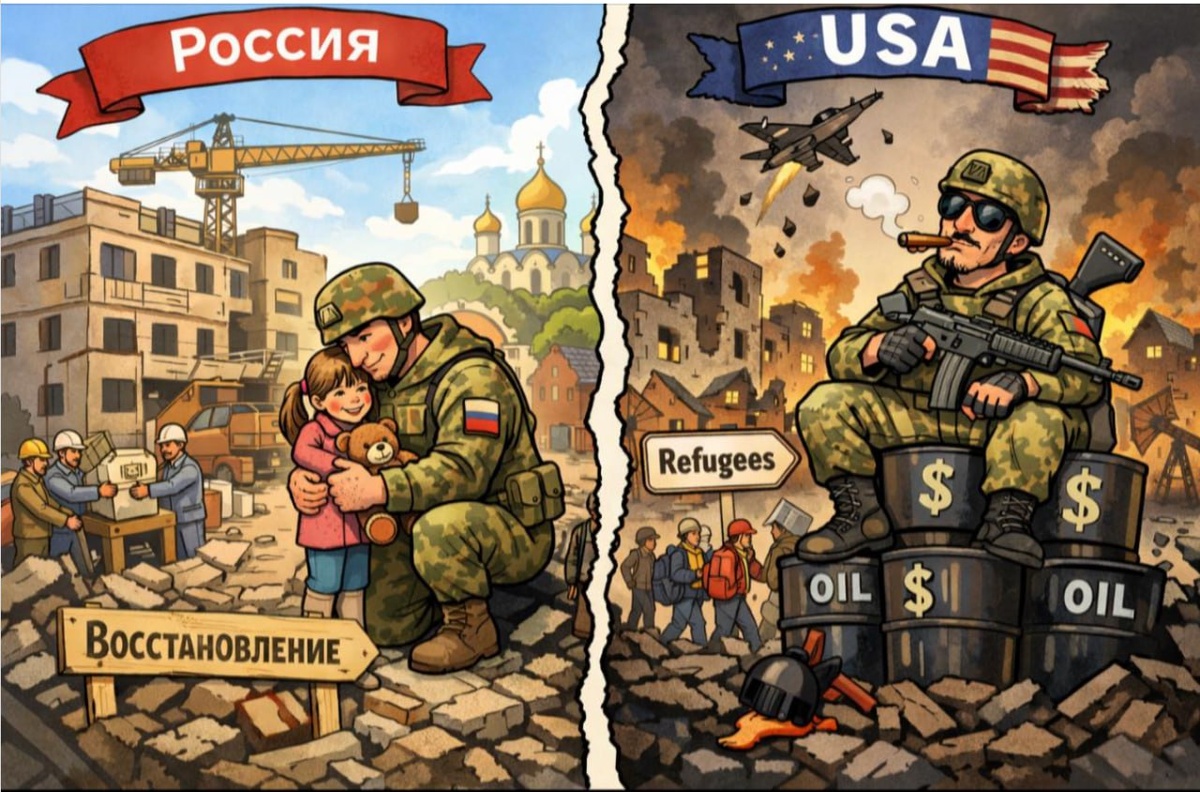 Учитывая происходящее, очень четко можно на этой картинке увидеть разницу нашего цивилизационного подхода и американского)))
