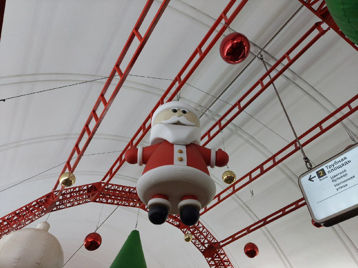 Дед Мороз устал. Московское метро: мозаика на Трубной и нуар на Достоевской. Что удивило дочь?