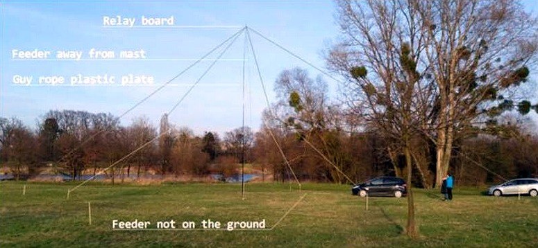 2-х элементная одномачтовая проволочная антенна с 4 переключаемыми направлениями