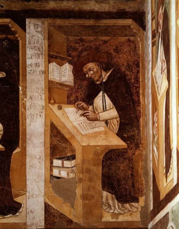Художник Томаззо да Модена написал портрет кардинала, сидящего в скриптории. На носу священнослужителя, тщательно выводящего букву за буквой, красуются две оправленные линзы без дужек. 🧐