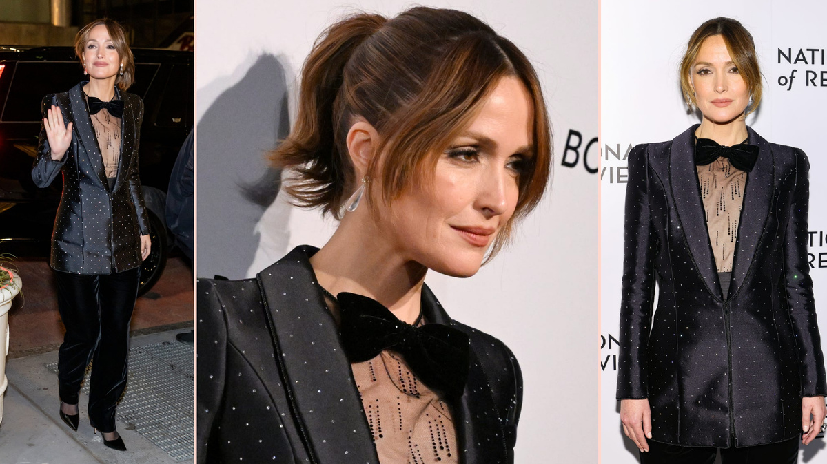 Обладательница премии "Золотой глобус" Роуз Бирн уже вернулась к работе. Спустя всего несколько дней после того, как она была удостоена награды за лучшую женскую роль в кинофильме, мюзикле или комедии за свою работу в фильме "Если бы у меня были ноги, я бы тебя пнула", австралийская актриса появилась на гала-вечере Национального совета кинокритиков в Нью-Йорке. На мероприятии, где она была удостоена награды за лучшую женскую роль, звезда продемонстрировала свой собственный взгляд на костюмы, появившись в поразительном наряде от Armani Privé. В центре ансамбля был структурированный блестящий пиджак с длинными открытыми лацканами, сходящимися на талии. Скульптурные плечи и стилизованные швы создавали элегантный, но игривый силуэт, а скрытая застежка помогала избавиться от традиционного образа смокинга. Небольшие серебряные кристаллы дополняли образ, добавляя блеск, достойный самой сияющей звезды. Под ним Бирн надела прозрачный топ, украшенный нежными черными драгоценными камнями, каск