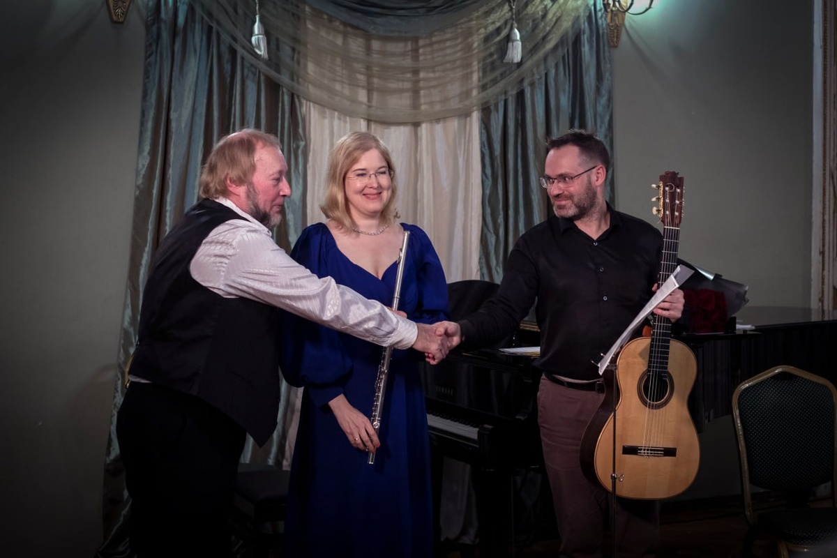 , который уже больше 40 лет украшает репертуар «Петербург-концерта» теплым звучанием классической гитары. В этот вечер зрители вместе с артистами совершили незабываемое музыкальное путешествие по страницам творчества мастера, ведь сочинения Олега Максимова, в том числе цыганские песни и романсы, занимающие особое место в его судьбе, стали основной программы. На сцену вместе с ним вышли его друзья и коллеги — блистательные петербургские инструменталисты и вокалисты: Наталия Кривёнок (меццо-сопрано), Наталья Капустина (флейта), Александр Вулла (гитара), Мария Грибкова (скрипка), Наталья Максимова (фортепиано), Всеволод Максимов (фортепиано), Анастасия Упанова (домра), Маргарита Казанкина (вокал), Виталий Студилов (вокал, гитара). Вела концерт Анна Фомичёва. Желаем Олегу Максимову долгих лет вдохновения и творчества, и уже ждем новой встречи! Фото: Михаил Костюченко