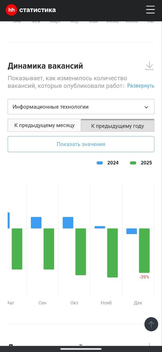 Падение количества вакансий. Просто обвал. Сравнение данных 2024 и 2025 годов. Не понимаю причины, видимо ужимают бюджеты на развитие?