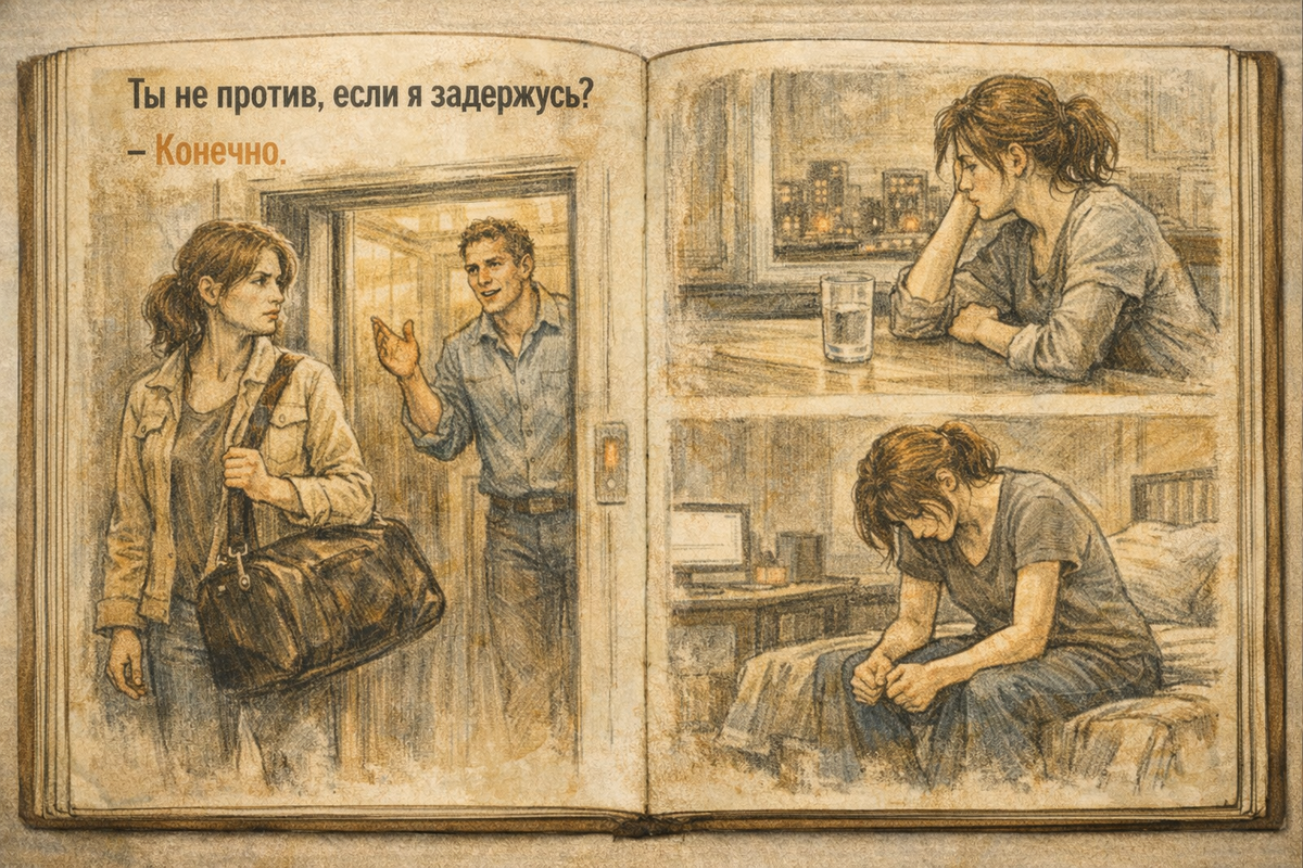 Я стояла у двери лифта, держа в руках его сумку, и слушала, как он рассказывает о новом проекте. "Ты не против, если я задержусь?" - сказал он, улыбаясь так, будто спрашивал о простой мелочи, а не о том, что это значит для меня: ещё два часа сидеть одна в пустой квартире, готовить ужин, который он даже не увидит, и ждать, когда он придёт, будто я обязана быть на месте, даже если он этого не требует вслух. Я кивнула. "Конечно", - ответила я ровно, тихо, почти беззвучно. Он этого не заметил. И я поняла: если скажу "нет", меня снова обвинят в эгоизме. Внутри разлилась злость, горячая и тяжёлая, словно свинец, который растекается по венам. Обычно я поступаю так автоматически. Я удобная. Я соглашаюсь на все просьбы, мелочи и крупные планы, которые требуют меня больше, чем мне хочется. Я улыбаюсь, говорю "не проблема", "всё под контролем", "конечно, сделаю". Я не оглядываюсь на свои желания, не спрашиваю себя, чего хочу я. Я просто выполняю чужие ожидания - и злюсь на себя за это. Сегодня ве