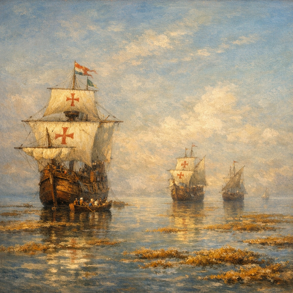 Колумб в 1492-м первым записал встречу. Его флот три дня полз через эти ковры, ветер стих, матросы запаниковали: водоросли — верный признак мелей, корабль вот-вот сядет на рифы или утонет, опутанный зеленью. Колумб в дневнике отметил, что команда боялась не вернуться в Испанию из-за полного штиля. На деле водоросли оказались рыхлыми — даже деревянный каравелл их резал как масло. Но страх засел намертво, и легенда родилась.