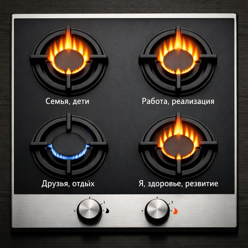 Баланс по-взрослому: где сейчас твой главный огонь? Субботнее полезное ☕️ Сегодня поймала классную метафору про баланс в жизни. Представьте, что ваша жизнь — это плита с четырьмя конфорками 🔥 1. Семья, дети 2. Работа, реализация 3. Друзья, отдых 4. Я: здоровье, энергия, развитие, внутреннее состояние И вот мысль, которая меня прям зацепила: мы часто пытаемся включить все четыре конфорки на максимум… а потом удивляемся, почему у нас “всё пригорает” 😄 Баланс — это не когда везде огонь-пожар. Баланс — это когда вы осознанно регулируете огонь. Например: Если вы решились на малыша и сейчас для вас период “семья” — ребёнок, заботы, важные изменения — логично сделать сильнее конфорку “семья”, а остальные может даже и выключить на время, чтобы нигде не случился пожар. Или наоборот. Сейчас я впервые по-настоящему обратила внимание на себя: хочу больше движения, лучше питание, больше энергии. И понимаю: если конфорку “Я” сделать