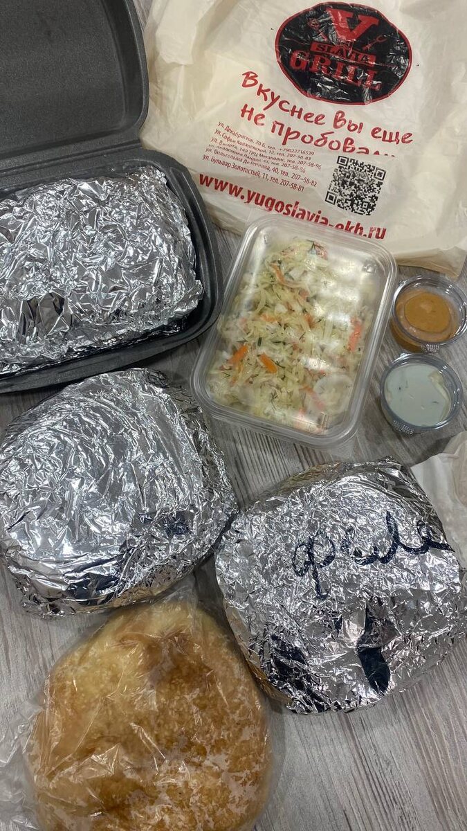 Пятница — это особенный день, когда можно расслабиться после рабочей недели и насладиться приятными моментами с семьей. В нашей семье сложилась традиция: в этот день мы не готовим еду, а заказываем доставку из различных заведений, чтобы провести вечер за вкусной едой и хорошим фильмом. На этой неделе мы решили попробовать доставку из "Югославия Гриль". Это место славится своими огромными и сытными бургерами и мясными блюдами, приготовленными на гриле. Мы выбрали бургеры и наборы микс на две персоны, которые обещали быть сытными и вкусными. Порции действительно впечатляют своим размером. Микс включает нежнейшую свиную шею, ароматный куриный окорок, куриное филе в беконе, пикантные чевапи, лесковачки уштипак — рубленные кусочки молодой говядины с ветчиной и сыром, обжаренные на гриле, а также две версии плескавицы: классическую и деликатесную версию специально для истинных ценителей вкуса. К этому богатству вкусов прилагается аппетитная маринованная капуста, соус на выбор (мы взяли сербс