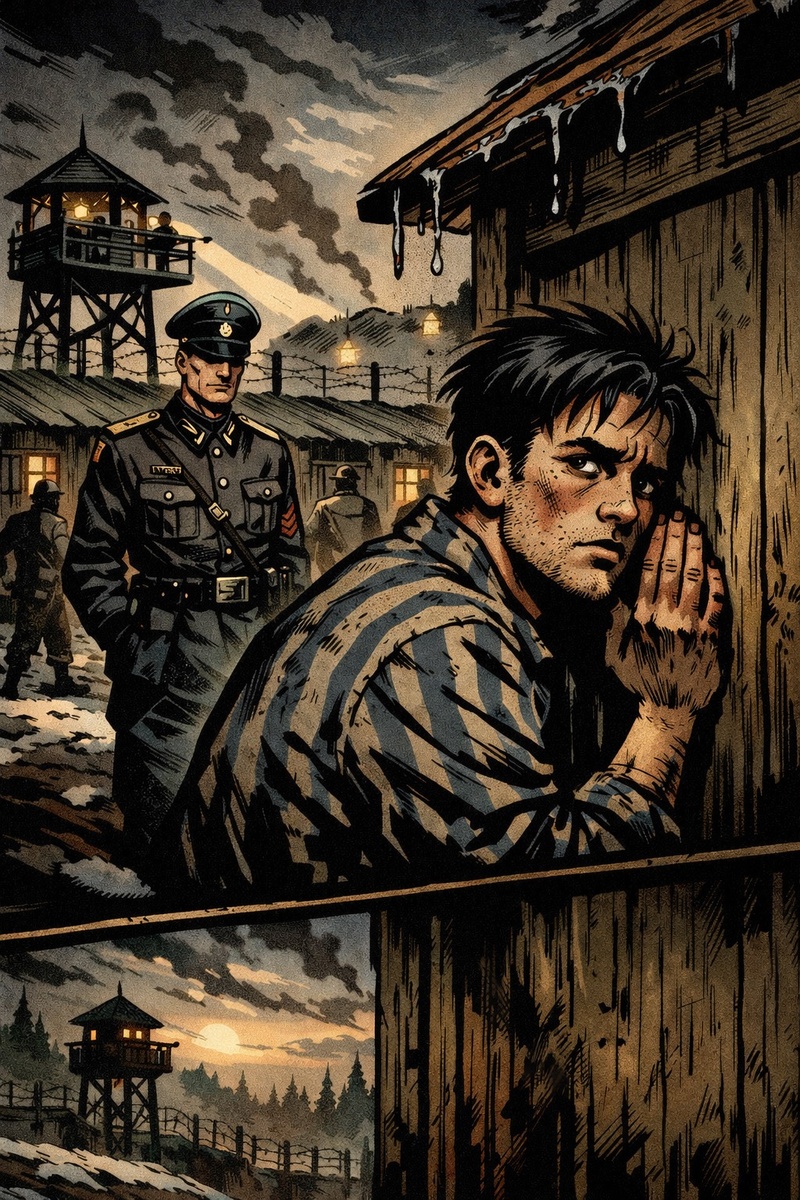 Весна 1943 года пришла незаметно. В лагере для военнопленных она не пахла ни талым снегом, ни землей — только сыростью, дымом и чужим страхом. Снег еще лежал серыми островами вдоль колючей проволоки, но в воздухе уже чувствовалась вода: она капала с крыш бараков, стекала по гнилым доскам, будто время само пыталось убежать отсюда. Антошке было двадцать лет, и он давно перестал считать дни. Сначала отмечал царапинами на нарах, потом сбился, потом понял — здесь счет не имеет смысла. День отличался от ночи лишь криками и шагами сапог. Время в лагере не шло, оно застряло, как сломанные часы без пружины. До войны Антошка мечтал стать часовщиком. В родной деревне его знали как парня, который мог починить любой будильник. Он любил слушать, как внутри тихо щёлкают шестерёнки, как время снова начинает жить. Теперь же он слушал другое — команды на немецком, удары прикладов, кашель умирающих. Лагерь находился на окраине леса, но лес был запретным, почти мифическим. За проволокой стояли в