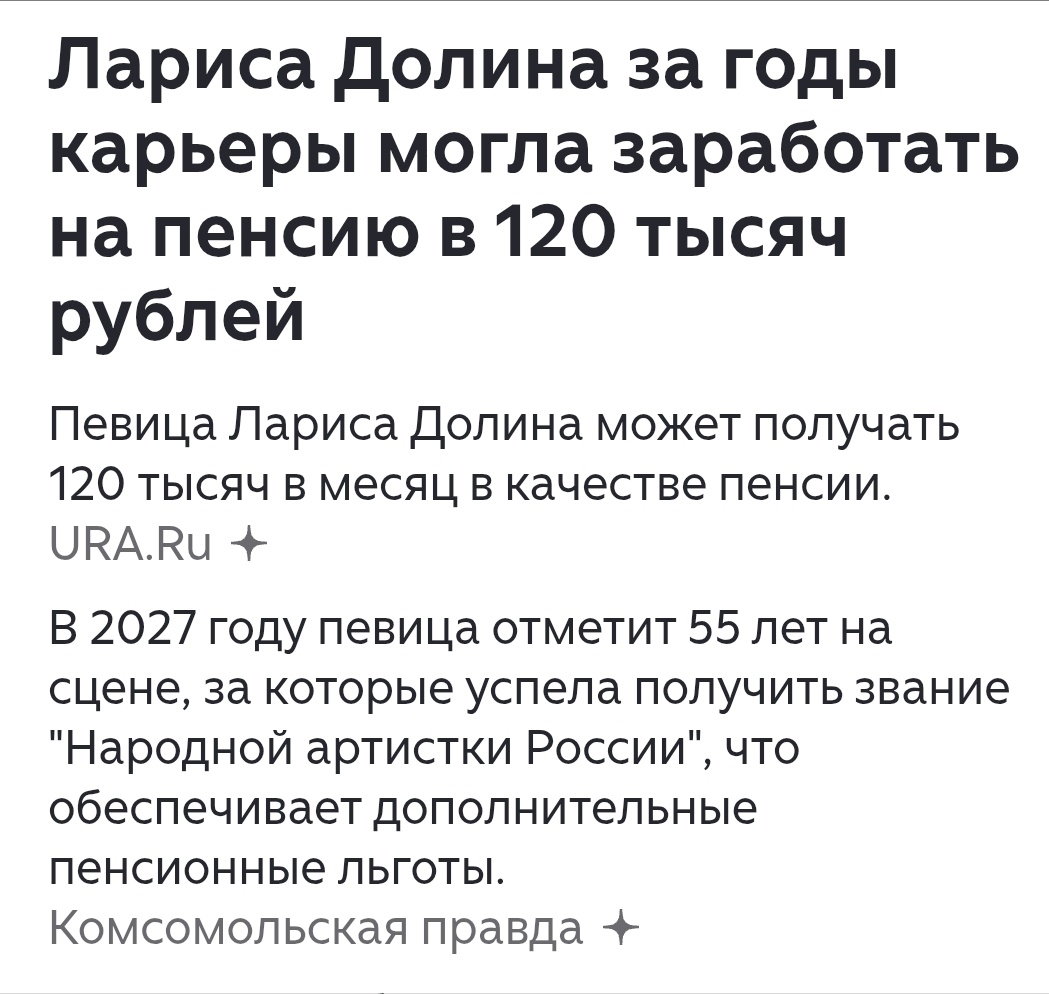 Прочитала новость и сижу в офигевании. Нет, я догадывалась, что пенсии бывают разные. Я пойму, если у космонавта будет такая пенсия или у отставного боевого генерала. Или у знаменитого хирурга, спасшего тысячи жизней, или у представителей других профессий, которые принесли пользу стране, например, у ученых. Простите, а на каком основании у артистов такие пенсии????