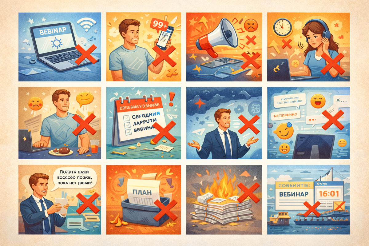Думаете, организовать успешный вебинар — проще простого? Сейчас я расскажу, как гарантированно провалить запуск. Читаете и отмечайте, какие из этих ошибок уже совершили вы. Симптом: вы месяцами ведёте блог, запускаете таргетированную рекламу, создаёте контент для соцсетей, но вебинары всё равно не собирают нужную аудиторию. Почему это ломает: время и деньги уходят в пустоту, а результат остаётся непредсказуемым. Пока вы «греете» аудиторию, конкуренты уже продают свои курсы. Как правильно: использовать быстрые каналы привлечения. Например, голосовой обзвон. Мини-пример: вместо того чтобы неделями настраивать рекламные кампании, можно за пару часов обзвонить потенциальных клиентов и собрать сотни регистраций. Симптом: вы вкладываете все силы в создание идеального вебинара, но никто не приходит. Почему это ломает: даже самый крутой контент не привлечёт аудиторию, если о вебинаре никто не знает. Как правильно: сочетать качественный контент с эффективными методами продвижения. Мини-пример: