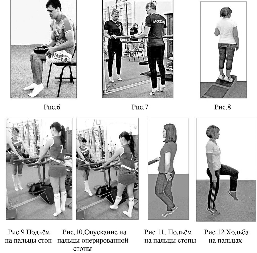 после прекращения иммобилизации, непосредственно во время ходьбы, поэтому требуется самый пристальный контроль со стороны врача-реабилитолога и инструктора ЛФК и полная концентрация внимания пациента во время упражнения. Специальное исследование с помощью электромиографии выявило, что нагрузка на АС при ходьбе зависит от степени плантарной флексии стопы.