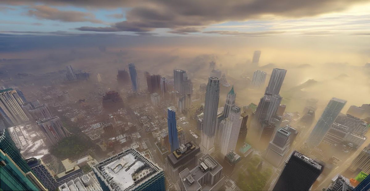 При общем плане виртуальный город
