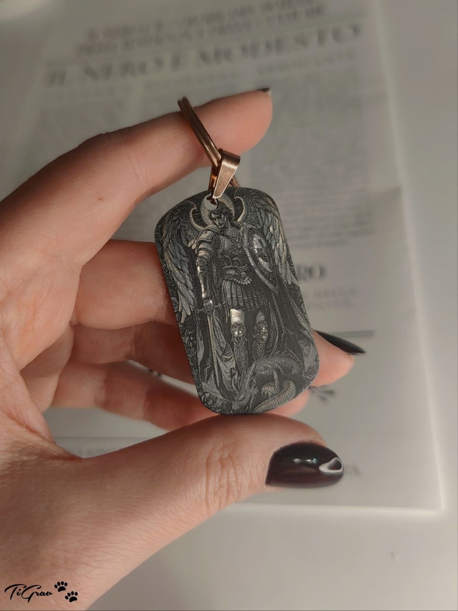 Стиль складывается из мелочей, а настоящий характер проявляется в символах. В тех вещах, которые ты выбираешь осознанно, чтобы они напоминали о самом важном. На фото — наш жетон из премиальной нержавеющей стали. Глубокая лазерная гравировка с изображением Архангела Михаила выполнена с ювелирной точностью: от тончайших перьев крыльев до каждой детали доспеха. Твоя идея — наше воплощение ⚒️ Мы беремся за задачи любой сложности. Для нас нет «слишком мелких деталей» или «слишком трудных рисунков». Мы изготовим: ✅ Сложные художественные иллюстрации и портреты; ✅ Личные эмблемы, гербы и логотипы; ✅ Важные даты, цитаты или координаты; ✅ Гравировку по вашим авторским эскизам. Не соглашайся на типовое. Создай вещь, которая будет принадлежать только тебе. #гравировка #нержавеющаясталь #жетонсгравировкой #подарокмужчине #авторскиеаксессуары #стиль #НаЗаказ #TiGrav🐾