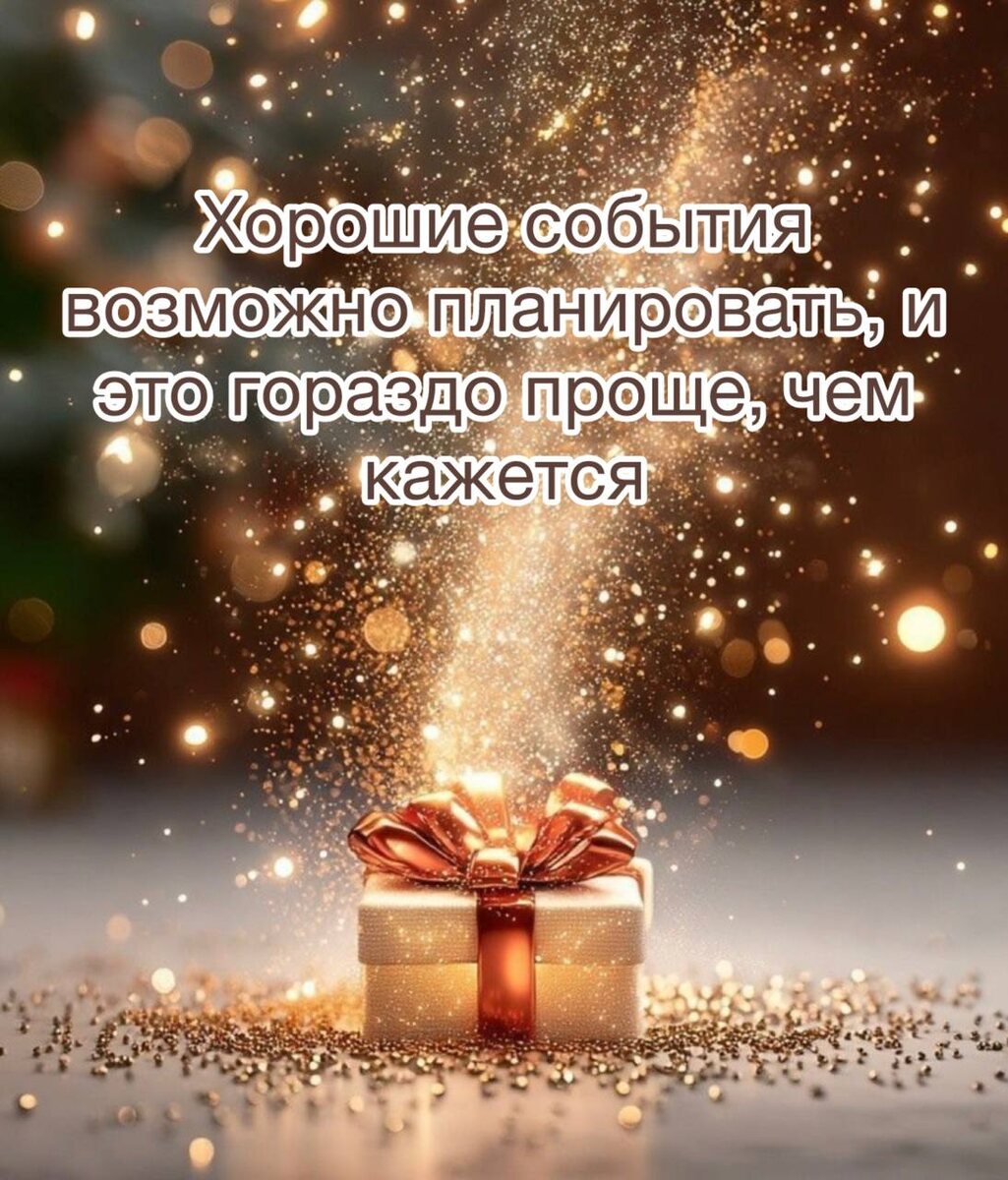 «У каждого события есть год спустя» ⚡️Хотите прийти в такое будущее, где ваша цель уже исполнена? Если «да», вот вам простая практика🎁 💯% работает! Проверяйте на себе👌 ☘️Найдите 5-10 минут для себя, лучше в тишине… ☘️Будет здорово, если получится включить негромкую приятную музыку, можно даже прикрыть глаза и дать себе время «намечтать» хорошие события в своей жизни Приготовились? 👀 ☘️Начинаем думать о своем желании и в подробностях представлять КАК ЭТО… когда ваша цель в желаемом будущем достигнута🎆 Вот несколько вопросов-подсказок: 🤩как выглядит ваша делаемая цель? 🤩на что она похожа, какие образы вам напоминает? 🤩какие ощущения вы испытываете, когда представляете ее достижение? 🤩что вы замечаете в себе, когда чувствуете, что цель может быть достигнута? 🤩найдите какую-то деталь в своем внешнем облике или внутреннем состоянии, когда представляете себя в желаемом будущем? 🤩спросите у себя из этого желаемого будущего «как тебе удалось достичь цели? как это получилось?
