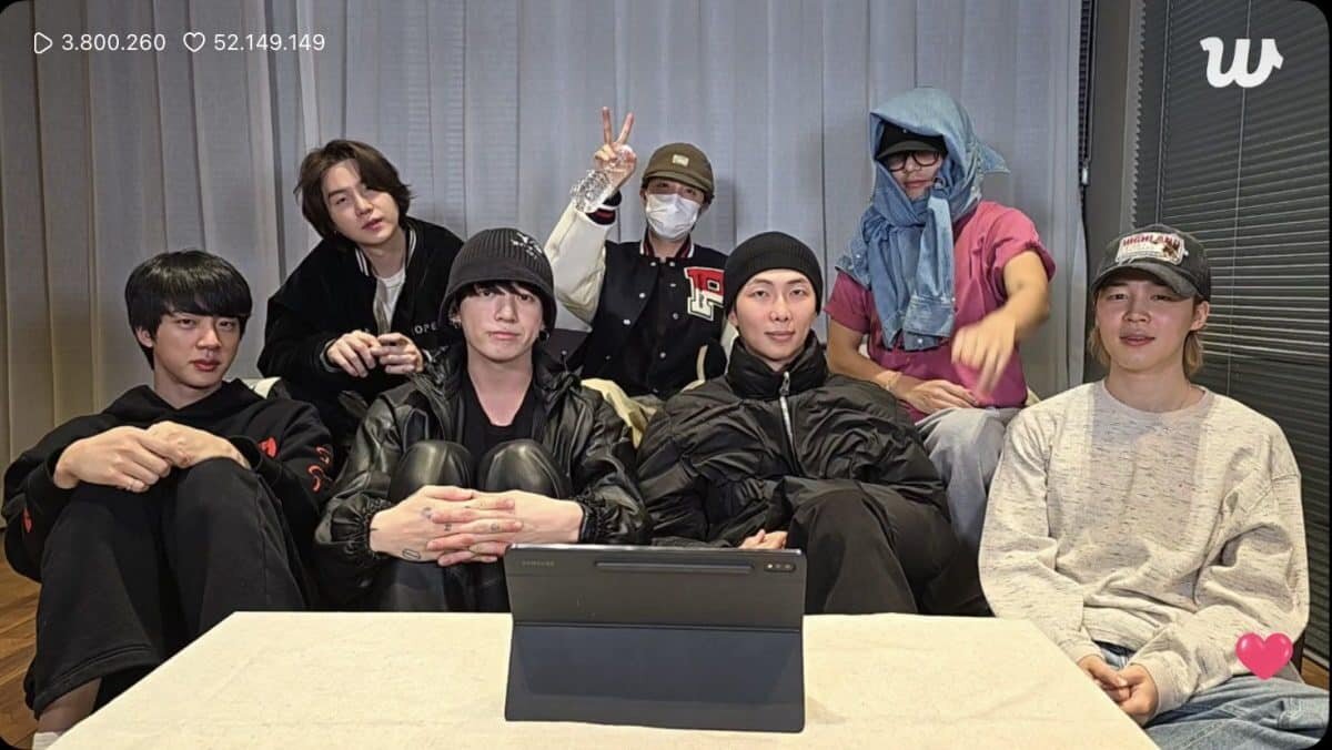 Ви поинтересовался, где участники проведут следующий лайв, на что Намджун предложил не усложнять и сделать трансляцию прямо в репетиционной комнате. В ответ Ви с теплотой вспомнил предыдущий эфир у Намджун дома, отметив, что тогда они отлично провели время. Джин с юмором добавил, что дом Намджун вообще очень «удобный» — там много вещей, которые можно забрать с собой. Когда Джей-Хоуп уточнил, что именно он имеет в виду, Джин признался, что в прошлый раз просто забрал алкоголь, а Намджун без колебаний позволил это сделать. Лидер группы с улыбкой пояснил, что всё просто — он любит своих мемберов.