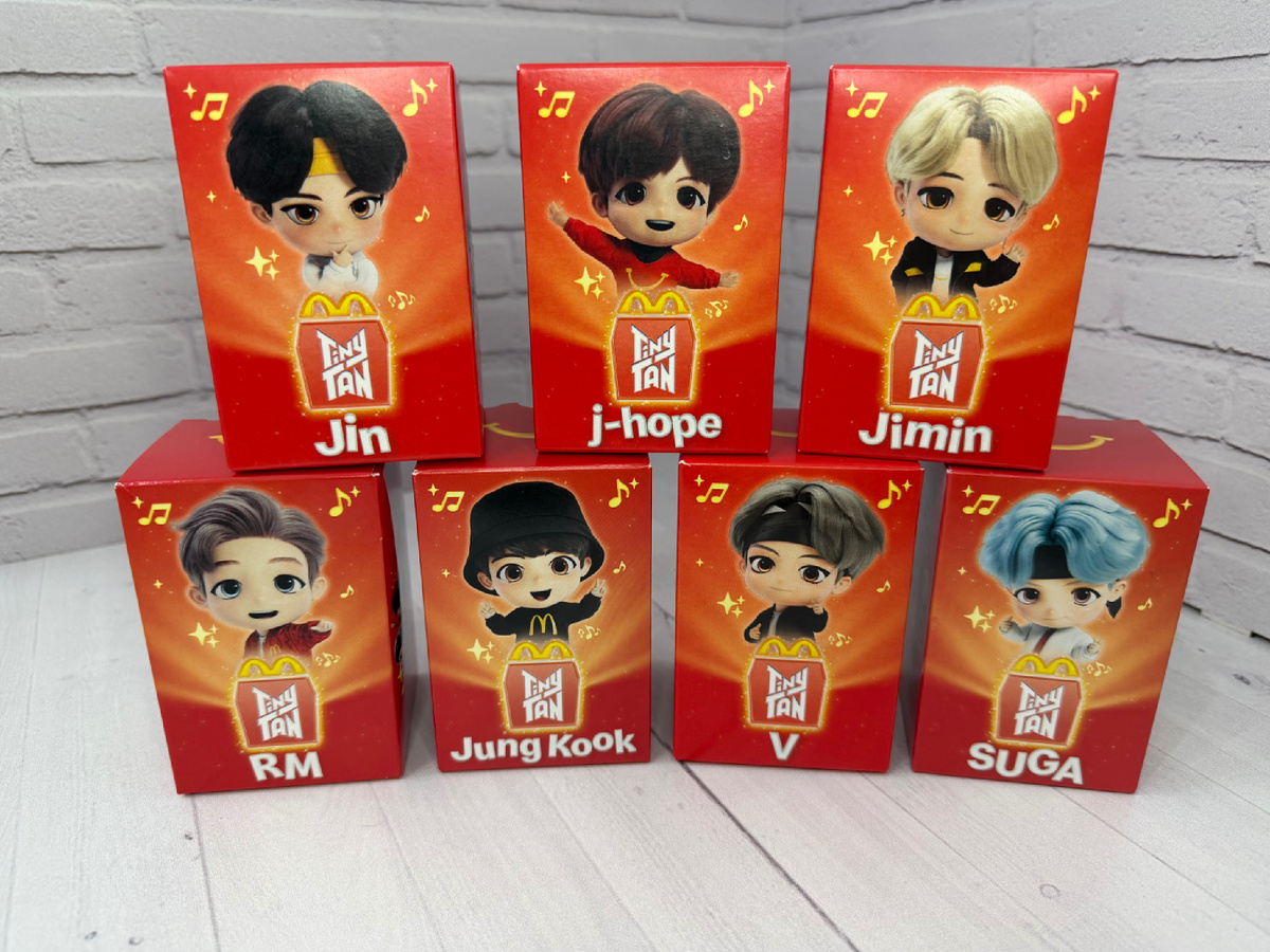 TinyTan- это милые персонажи, основанные на образах участников группы BTS. Летом 2025 года было объявлено о коллаборации с Макдональдс, для детских обедов Хеппи мил было выпущено две серии игрушек.