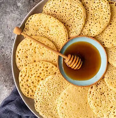 Это слегка подслащённые блинчики с маленькими дырочками, в которые удобно добавлять мёд, растопленное сливочное масло или любую другую начинку по вашему вкусу. Эти марокканские блинчики готовятся так же быстро и легко, как и традиционные, - даже проще, потому что их не нужно переворачивать. Обязательно попробуйте их приготовить. Вот рецепт марокканских блинчиков. Продукты необходимые для приготовления: