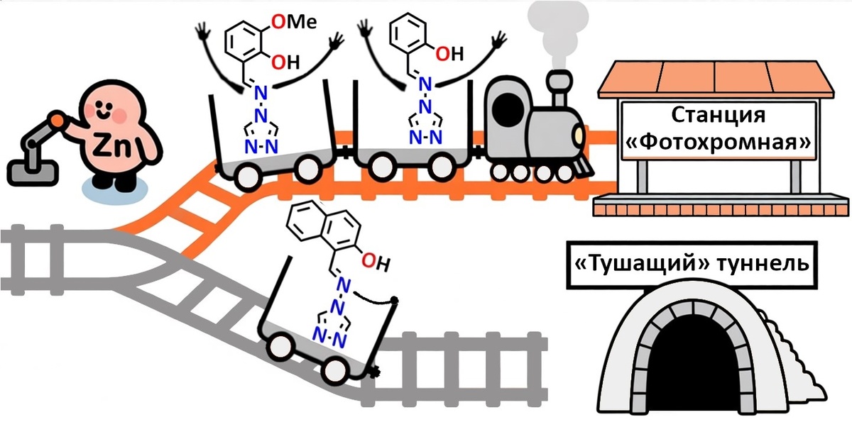 Коллектив исследователей из Института общей и неорганической химии им. Н.С. Курнакова РАН, НИУ «Высшая школа экономики» и Физического института им. П.Н. Лебедева РАН разработал новый подход к управлению оптическими свойствами кристаллов, в основе которого лежит использование комплексообразования для направленного изменения конформации органических молекул. Ученые синтезировали и изучили серию комплексов цинка(II) с нефотоактивными основаниями Шиффа – производными 4-амино-1,2,4-триазола. С помощью рентгеноструктурного анализа было показано, что при координации к иону цинка органические молекулы фиксируются в конформации, необходимой для протекания ключевого процесса – внутримолекулярного переноса протона в возбужденном состоянии (ESIPT). Комбинация экспериментальных методов и квантово-химического моделирования позволила определить ещё один решающий фактор, подавляющий фотохромизм: наличие π-π взаимодействий в кристаллической решётке, которые стерически препятствуют изомеризации молекулы