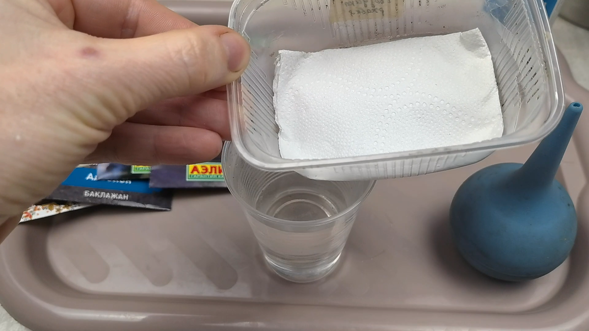 Сегодня покажу простой и необычный способ посева баклажанов без земли. Для этого способа посева в пластиковую емкость кладу туалетную бумагу в 2-3 слоя на дно контейнера. Смачиваю ее раствором перекиси водорода из расчета 2 столовые ложки перекиси на 1 л воды. Семена раскладываю по поверхности бумаги. Емкость накрываю крышкой и ставлю в теплое место возле батареи и держу там до тех пор, пока они не прорастут. Когда семена прорастут, поставлю всходы под подсветку. Когда появятся 2 семядольных листочка, рассаживаю их в отдельные емкости, заглубляя по семядольные листочки. Таким способом посева семена прорастают обычно на 6-7 день, если семена свежие. Всходы очень хорошо переносят пересадку в отдельные стаканчики. Рекомендую посмотреть статью 3 огурца, которые обязательно посажу в следующем сезоне 2 урожайных перца, которые обязательно посажу в 2026 году Если Вам понравилась статья, ставьте палец вверх, мне будет очень приятно. Не забудьте подписаться на канал, чтобы не пропустить
