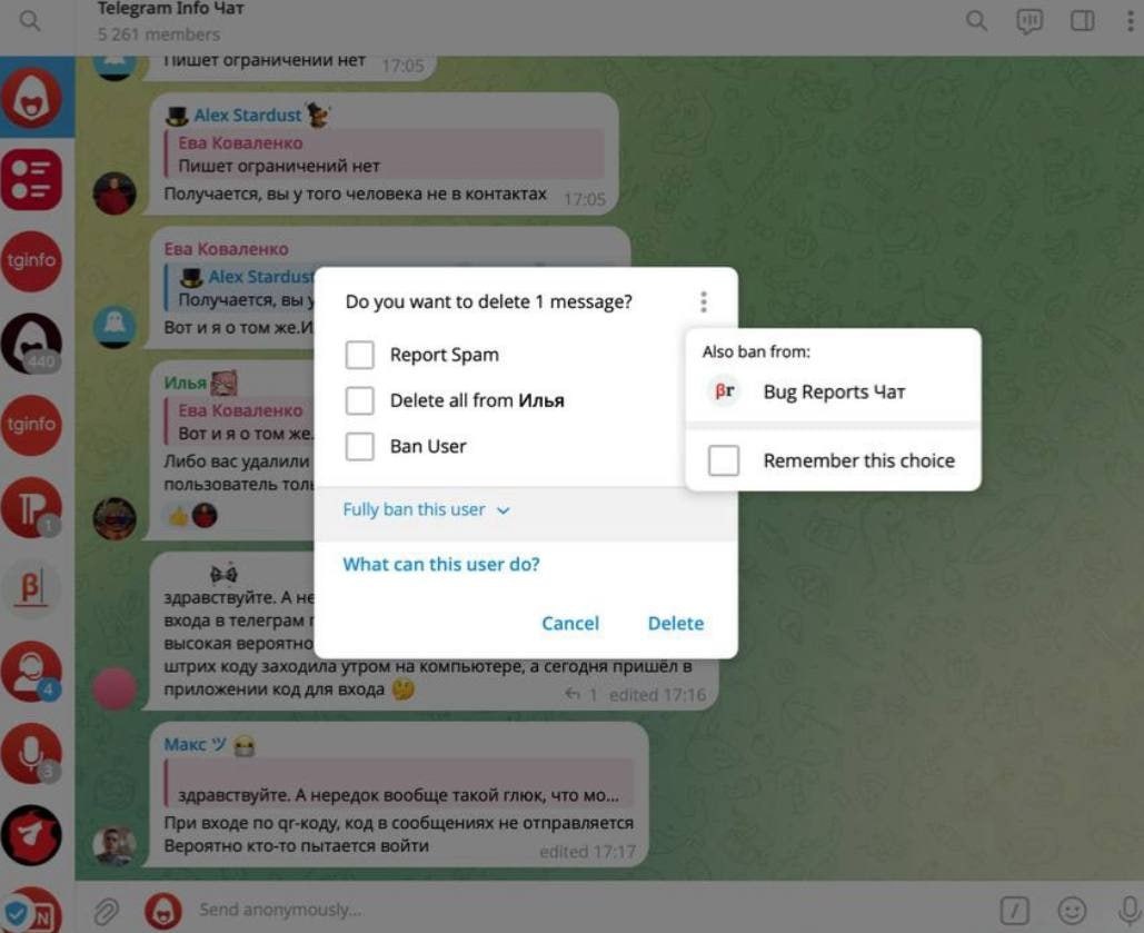 Скрытая фишка Telegram Desktop 6.4: Бан пользователя во всех группах сразу