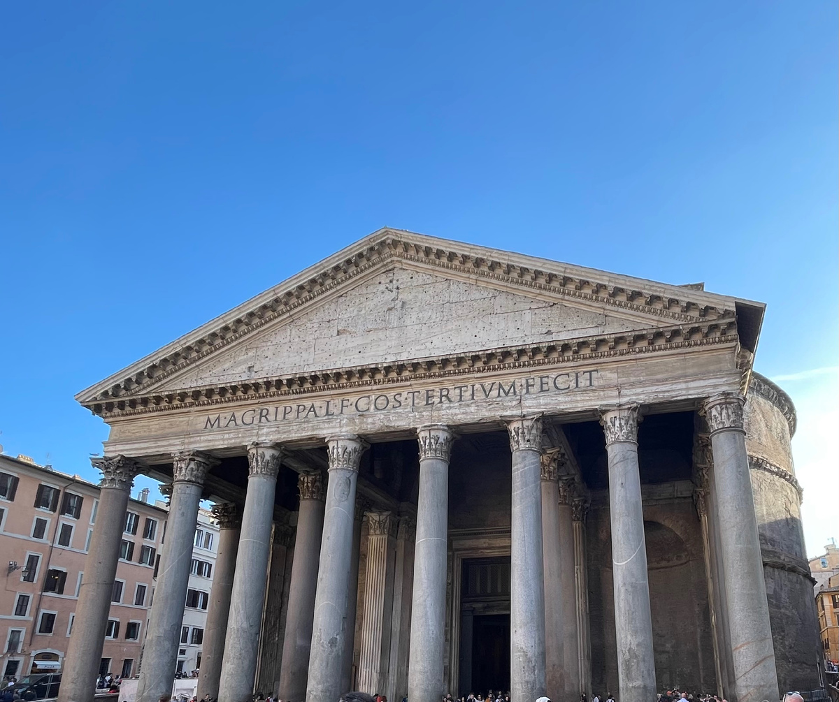 Благодаря своему превращению из языческого храма в христианскую церковь – базилику Санта-Мария-ад-Мартирес – по дарению византийского императора Фоки папе Бонифацию IV около 608 года н.э., Пантеон, безусловно, является наиболее сохранившимся из всех древних сооружений, которыми мы сегодня дорожим. Монументальная бронзовая дверь входа – один из основных конструктивных элементов, вносящих свой вклад в очарование, всегда окружающее это здание – именуемое «Ротонда» из-за своей формы. Предваряемая небольшим ризалитом, первоначально выступавшим из толщи стены Ротонды, эта дверь должна считаться оригинальным образцом римской эпохи, несмотря на многочисленные дополнения и реставрационные вмешательства, в частности, касающиеся деревянной обшивки внутренней стороны, заклепок и четырех картушей с бюстами Иисуса Христа и Девы Марии.