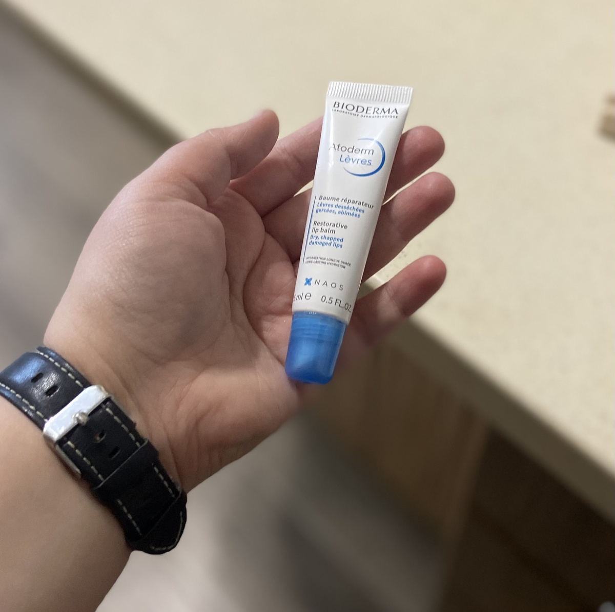Губной помады под рукой не было, терпеть уже не могла. Забежала в первую попавшуюся аптеку, и там фармацевт посоветовал мне бальзам для губ Bioderma Atoderm.