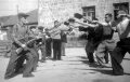 Бойцы подразделения Всевобуча обучаются отражению штыкового укола малой сапёрной лопатой во время занятий на пункте Всевобуча Молотовского района Тбилиси. 1942. Фото: В. Столяров. Из фонда РГАКФД г. Красногорск.