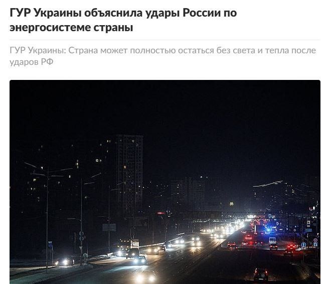 Главное управление разведки (ГУР) Минобороны Украины предупредило о возможных последствиях ударов России по энергосистеме страны. В своем Telegram-канале ведомство заявило, что украинцы могут полностью остаться без света и тепла. По информации ГУР, Россия применяет тактику «шантаж и давление», рассматривая удары по подстанциям атомных электростанций (АЭС). Ведомство считает, что Москва стремится заставить Украину подписать свои требования по прекращению военных действий. «Москва намерена отсоединить энергоблоки АЭС от объединенной энергосистемы Украины, что может привести к полной потере электричества и отопления», — добавили в ГУР. 💬 То говорят, что Москва не стремится к миру, то утверждают обратное. Не пора ли вам, уважаемые, прийти к единому мнению? Lesen Sie weiter unten auf Deutsch...