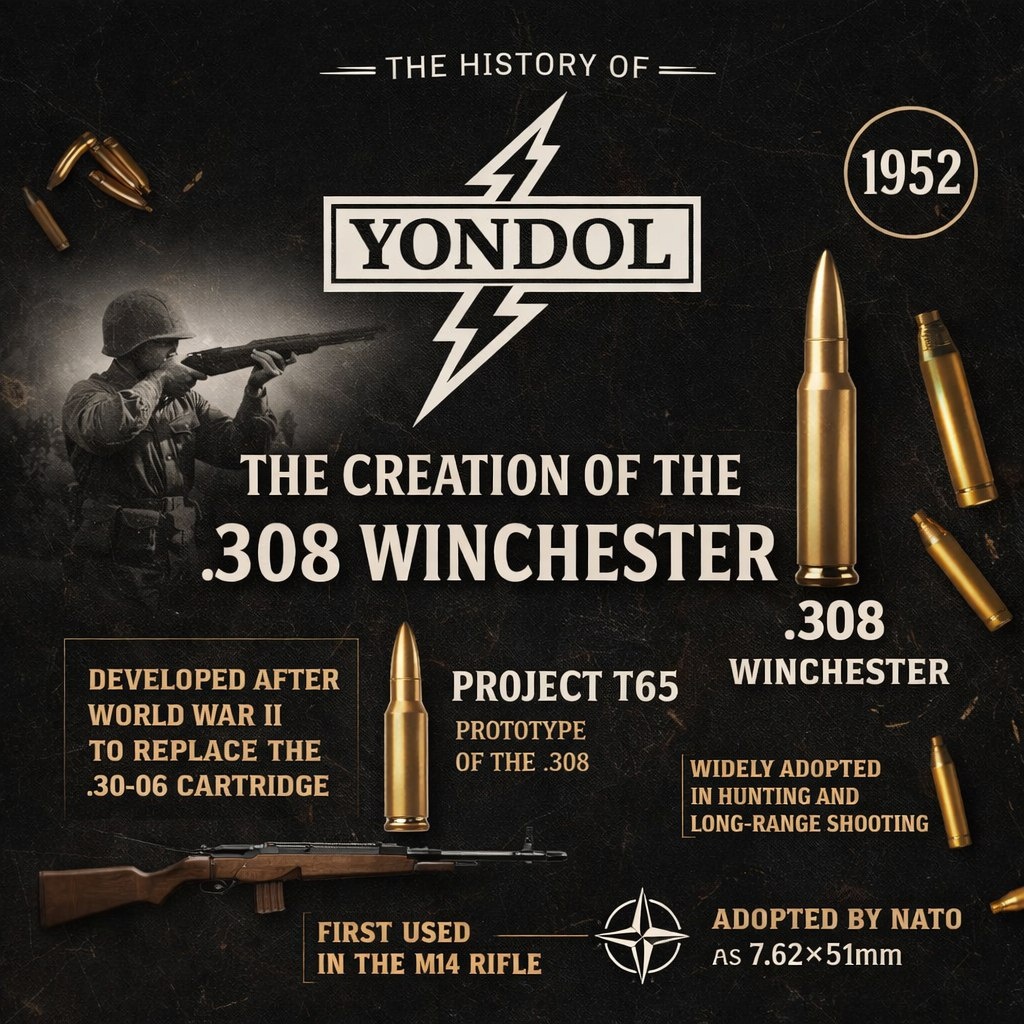 Калибр .308 Winchester был разработан американской оружейной компанией Winchester в 1952 году. Идея создания патрона возникла в ответ на потребность армии США в более мощном патроне для винтовок, который заменил бы старый патрон .30-06 Springfield, использовавшийся в первой половине XX века. Патрон .30-06 был слишком длинным и тяжелым для массового производства, что стало одной из причин перехода на новый калибр.