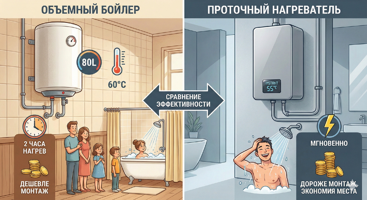 ⚔️ Comparative Analysis: Объемный бойлер vs Проточник