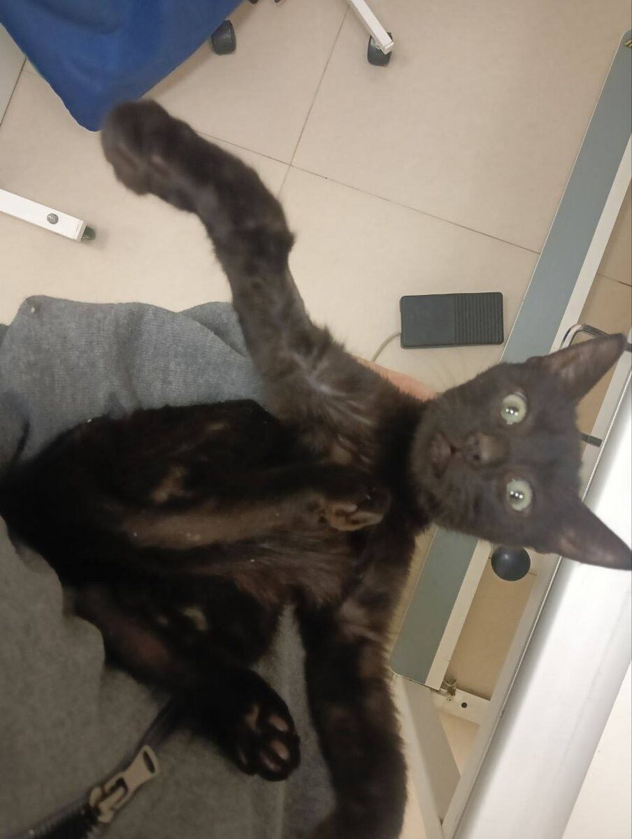 Вот так субботней ночью поехали в клинику. Черныш из подвала выдал температуру 40,7…лейкоциты высокие. Ждем назначений врача.