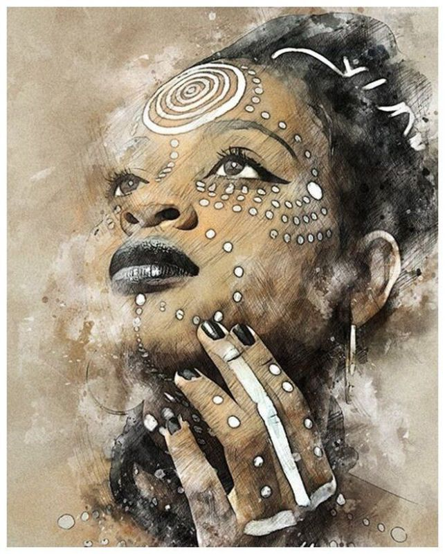 Войдя внутрь, он увидел сидящую на троне из эбенового дерева обнажённую девушку в головном уборе из птичьих перьев.