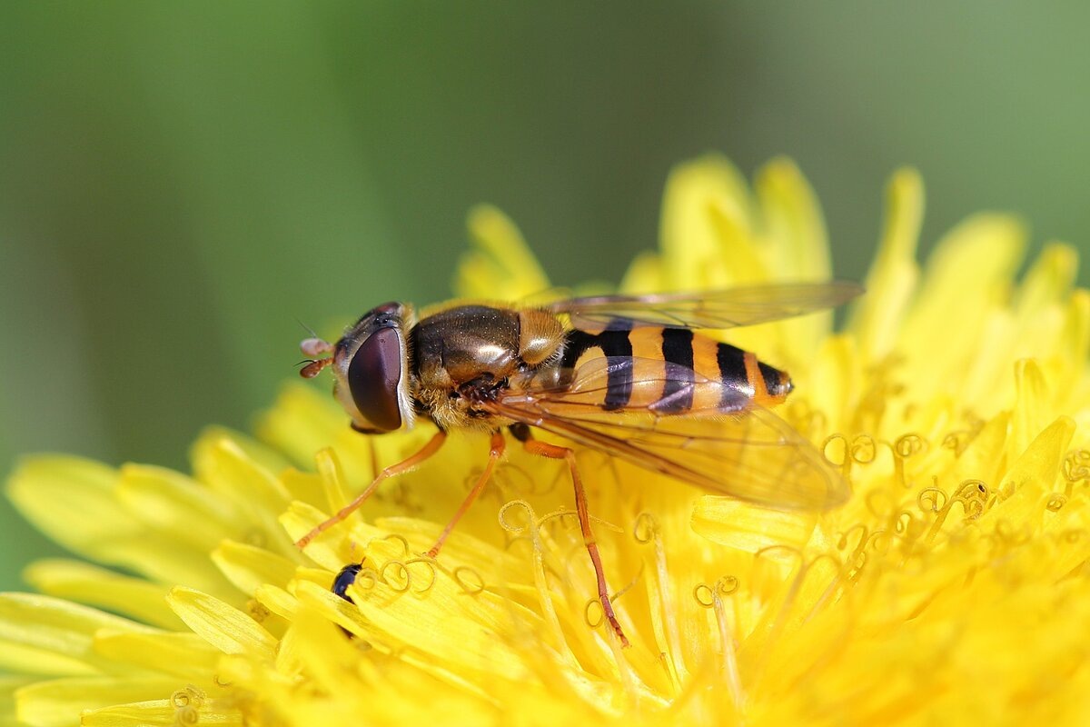 Мюллеровская мимикрия предполагает формирование в ходе эволюции подражания окраски незащищенных видов насекомых защищенным, прежде всего жалящим. Немецкий ученый Мюллер в 19 веке обосновал, что внешнее сходство с пчелами, осами у мух журчалок (на фото), некоторых видов ктырей, то есть насекомых, не обладающих жалом, защищает их от поедания насекомоядными птицами. Всё просто – внешний вид этих насекомых вызывает у птицы далеко не самые приятные воспоминания о болезненных ощущениях, последовавших после встречи с пчелой или осой. В XX веке проводились различные эксперименты, доказывающие быстрое формирование условного рефлекса у позвоночных животных после укуса жалящими перепончатокрылыми насекомыми. Например, опыт с жабой, шмелем и ктырем. В начале эксперимента перед глазами голодной жабы на ниточке раскачивается стрекоза (имитация движения нужна, так как жабы ловят движущихся насекомых). Как результат, жаба съедает стрекозу. Далее жабе предлагают муху-ктыря, имеющую сходство со шмелем