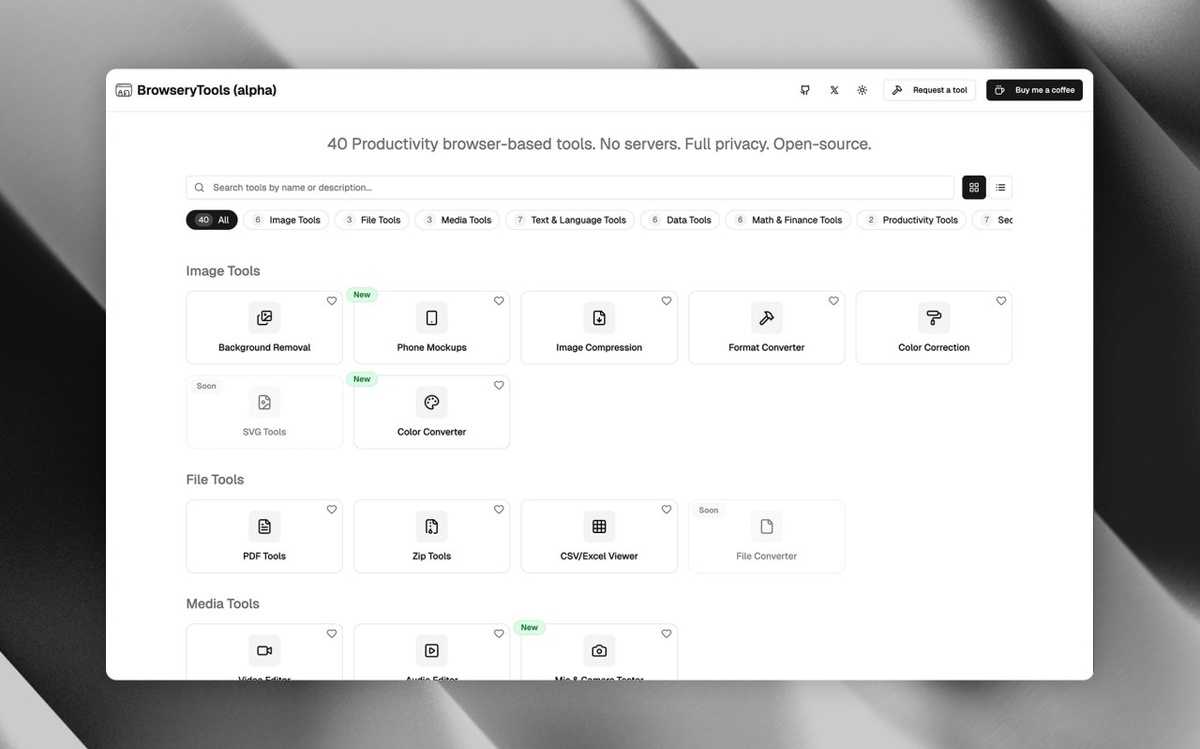 клик. Что внутри комбайна: 🔴 Работа с графикой: удаление фона с помощью ИИ, создание мокапов iPhone/Android и мощное сжатие фото без потери качества. 🔴 Редакторы PDF, работа с архивами Zip прямо в браузере и просмотр тяжелых CSV/Excel таблиц без установки софта. 🔴 Полноценный видео- и аудиоредакторы, а также чекеры микрофона и камеры для быстрой проверки перед звонками. 🔴 Генераторы паролей, трекер расходов с отчётами и конвертер валют. И всё это — на одном сайте. Забираем в закладки тут. CtrlAltDelights- подписаться