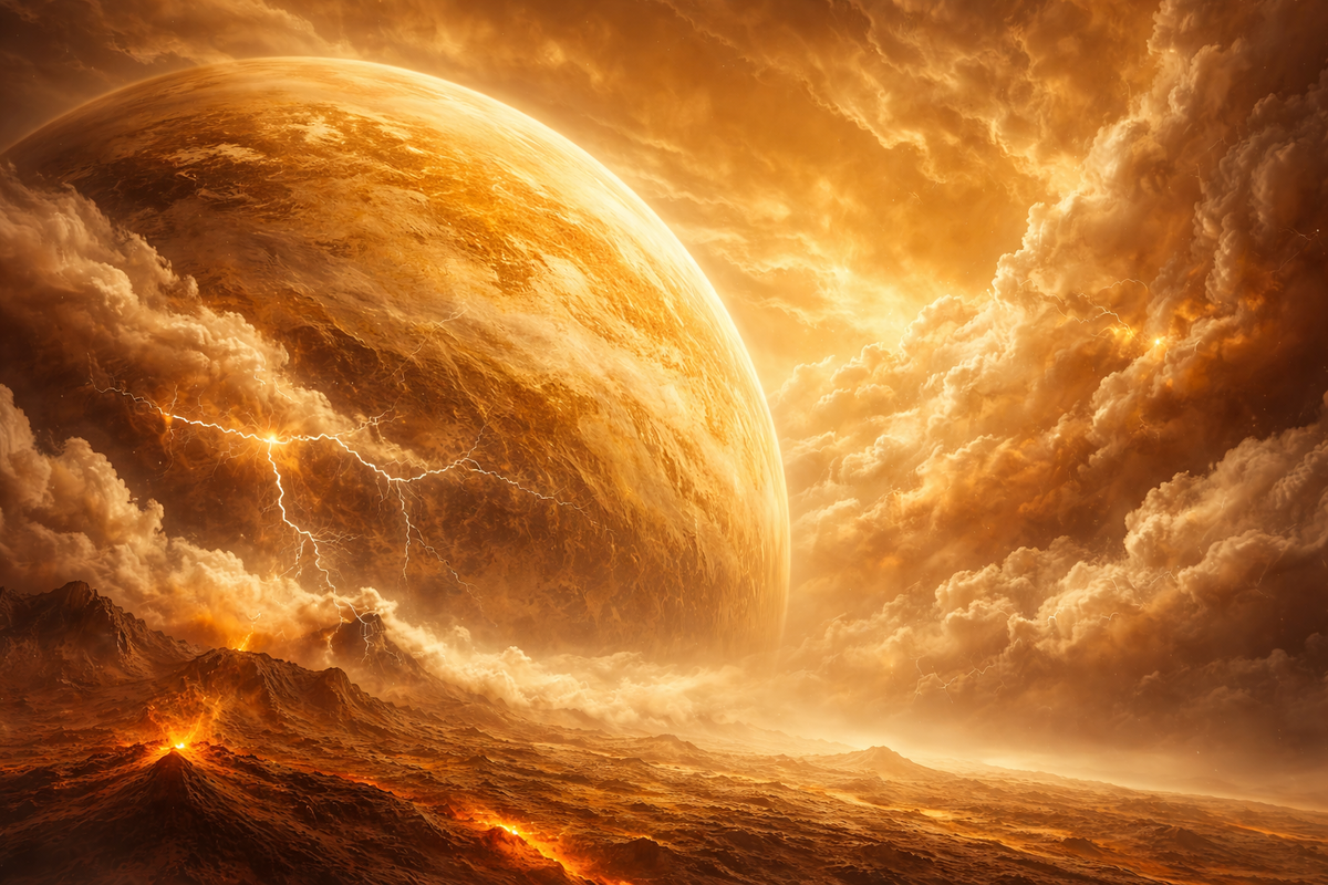 Венера — это планета парадоксов. Она похожа на нашу сестру по размеру и составу, но жизненная история сделала её зеркалом Земли с радикально искажённым отражением. Здесь нет океанов, нет Луны, а атмосфера — гигантская печь, которая превращает солнечный свет в непрерывный жар. Каждый элемент её истории — от вращения и ветров до состава атмосферы и отсутствия спутника — связан и влияет друг на друга.