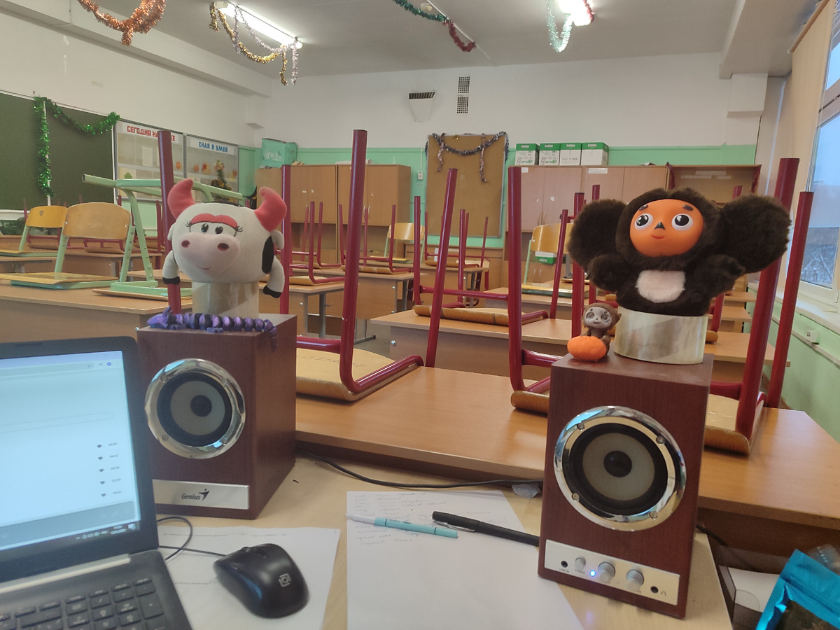 Первый день, первый урок. После моего звёздного выступления подарили на НГ Чебурашку))